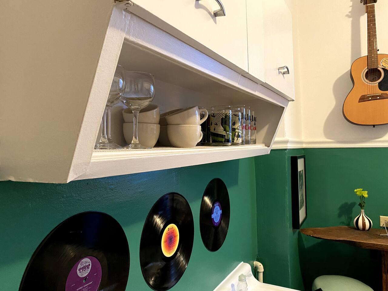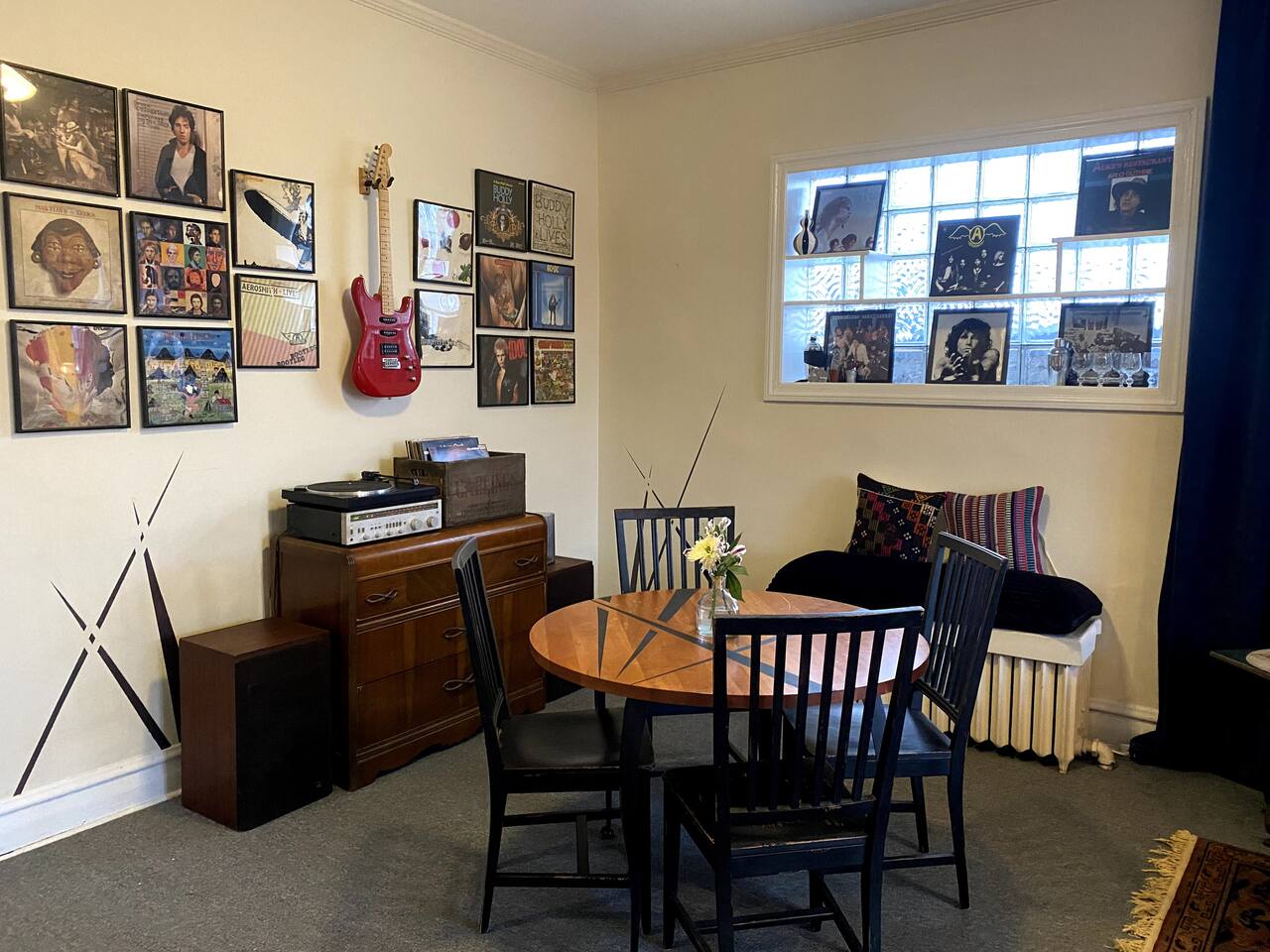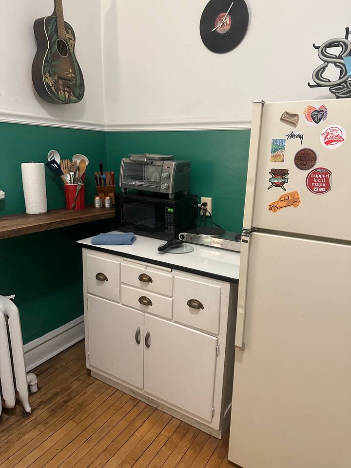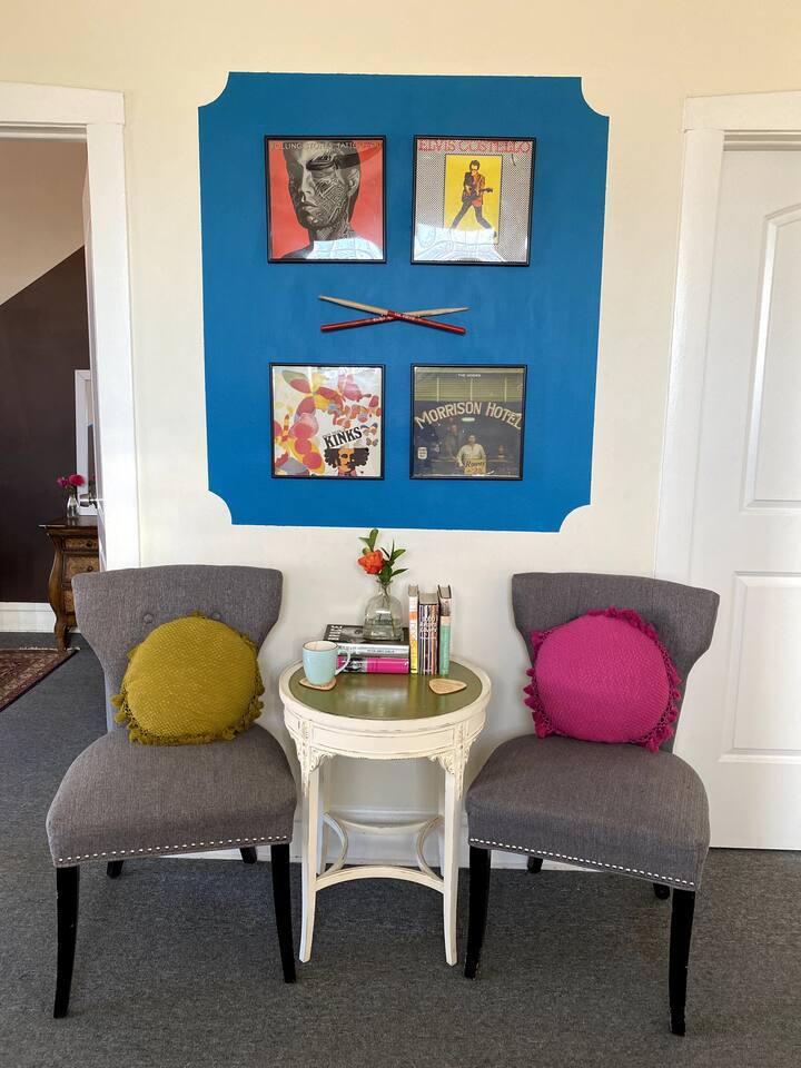 Get creative in this music-inspired getaway above the iconic Friendly Music Community. Co-hosted by the <a href="https://news.airbnb.com/the-number-one-new-host-in-each-us-state/">2021 #1 Top Host in Illinois</a>. Explore the many instruments in the funky retreat, enjoy local live music in the bar, relax in the Coffee Lounge, take a music lesson at the Friendly Music School. Nearby: Frank Lloyd Wright Home/Studio, Birthplace of Ernest Hemingway, easy train to downtown Chicago and Mag Mile.