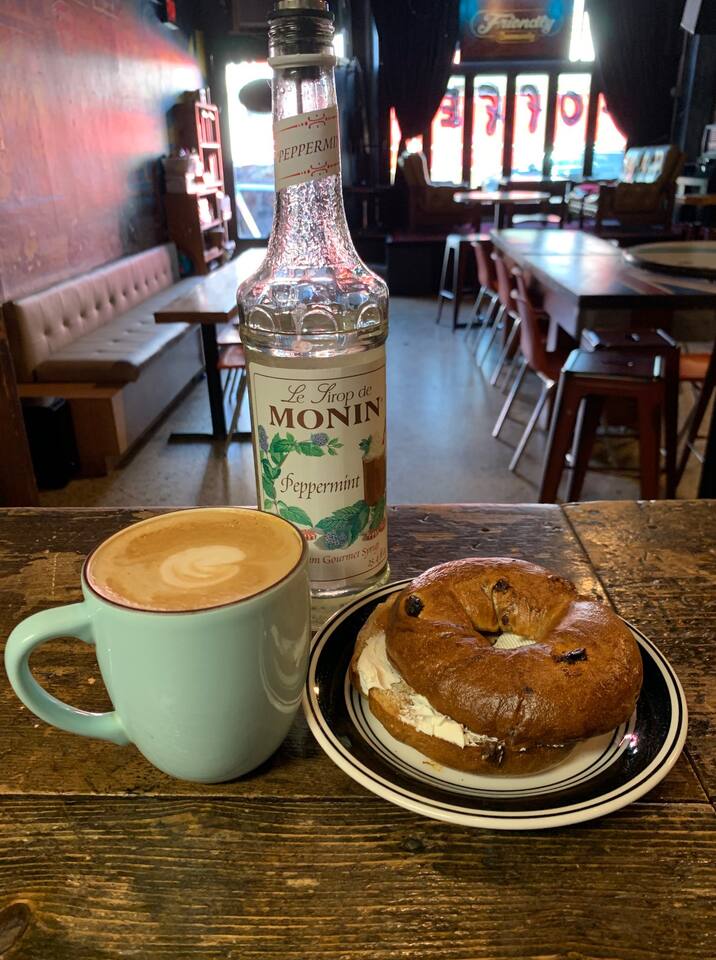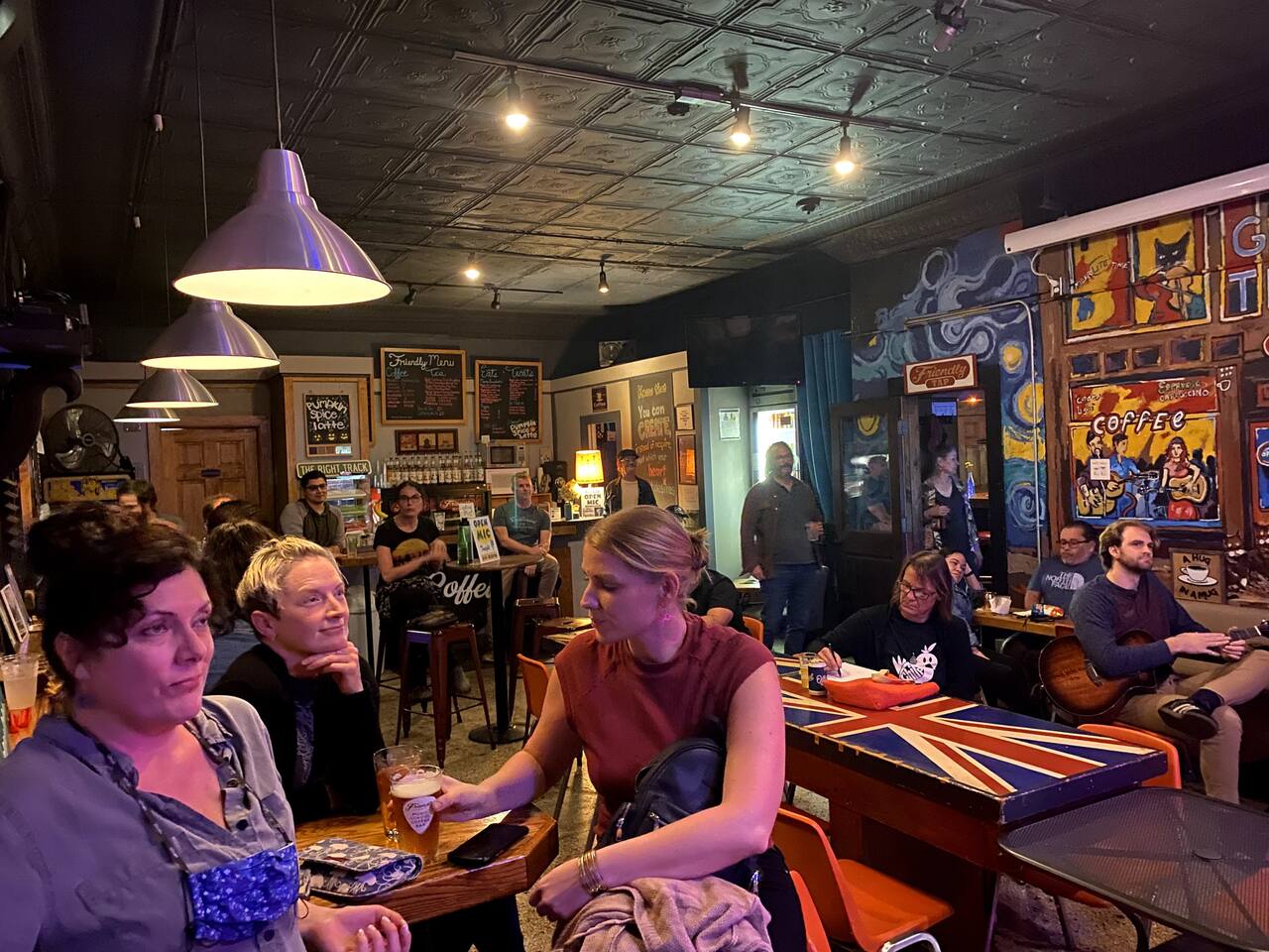 Friendly coffee shop and bar hours (downstairs): M: 7am-9pm T: 7am-10pm W: 7am-11pm Th: 7am-11pm F: 7am-1am St: 8am-1am Sn: 8am-9pm