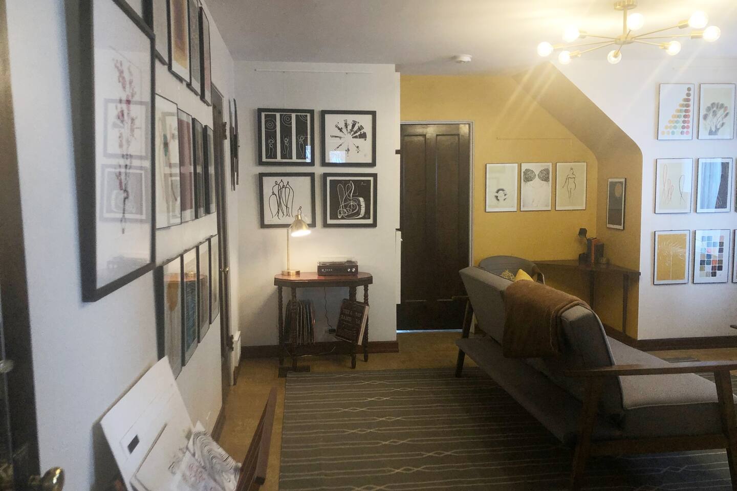 Named #1 Top Host in Illinois 2021 https://news.airbnb.com/the-number-one-new-host-in-each-us-state/ — The Gallery Loft space is curated with love featuring some of our favorite vintage pieces as well as artwork from local Chicagoland artists. All artwork is for sale.