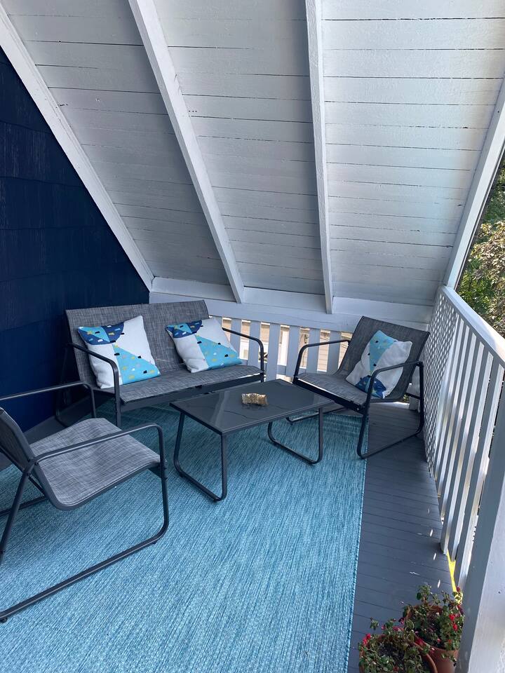 Exterior entrance is on the second story private porch. After booking you'll be given access for the electronic keypad.